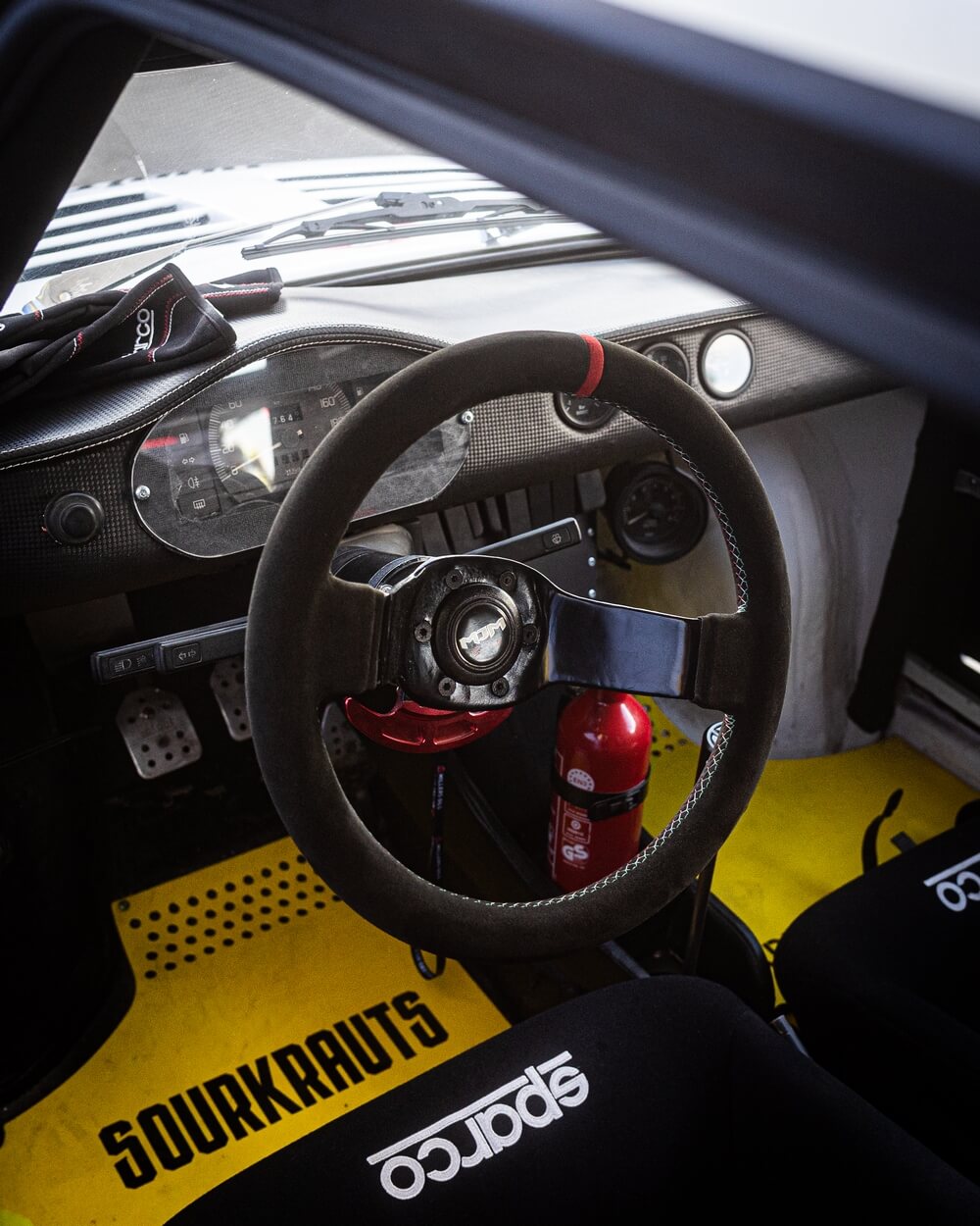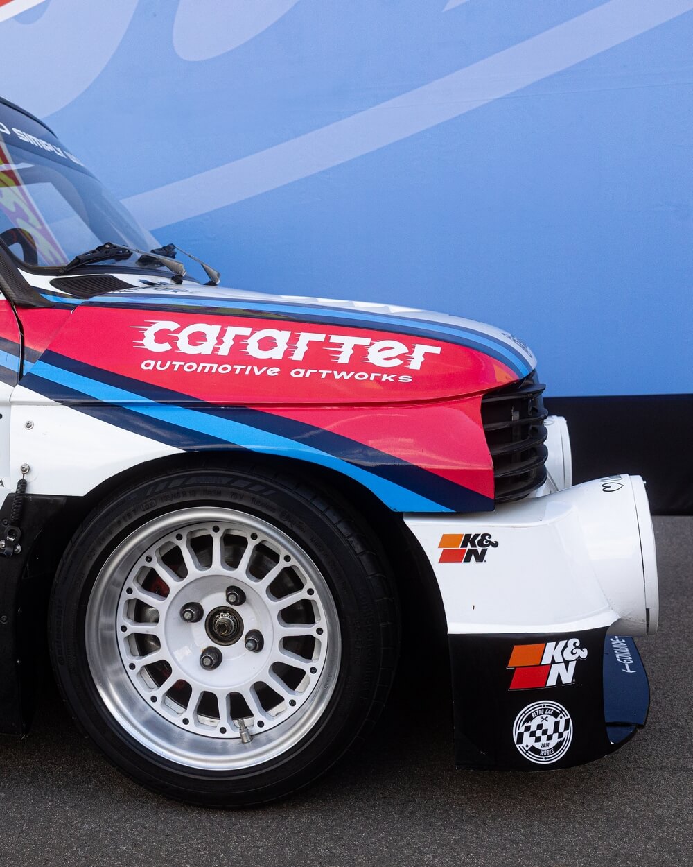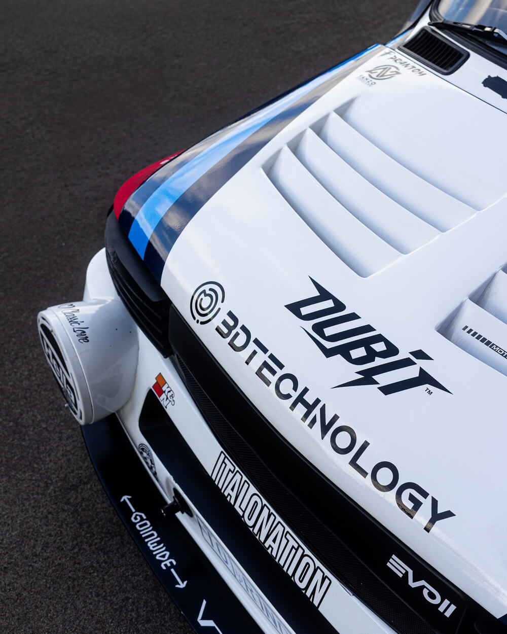 Inspiracja Grupą B. Zmiana koloru na biały, paski inspirowane Martini/S4 i pierwsze brutalne cięcia nadwozia „RWB Style”.